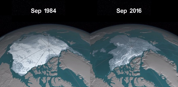 Rückgang der Arktischen Meereises zwischen 1984 und 2016