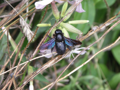 © Fotos: Blaue Holzbiene: Wilfried Doppler, Wildbienen-Hotel: Björn Schoas