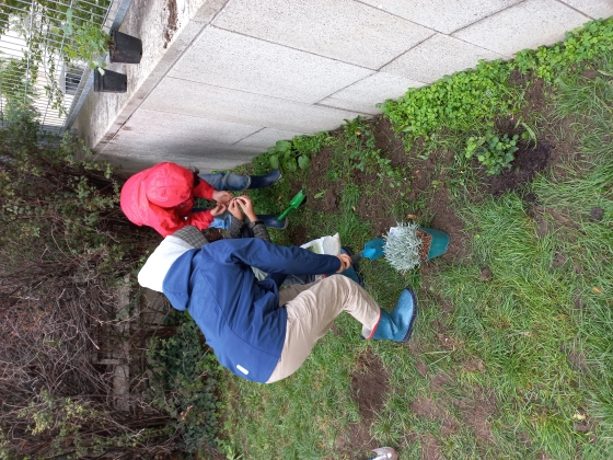 Die Umsetzung der biodiversitätsfördernden Maßnahmen begann am 19. September 2022. In der Früh war es kühl und vorerst nur bewölkt, aber im Laufe des Vormittags begann es zu regnen. Schließlich war der Regen so stark, dass wir die letzte der drei Klassen verschieben mussten. Die 4C konnte dann die restlichen Pflanzen bei strahlendem Sonnenschein am 28. September 2022 setzen.
