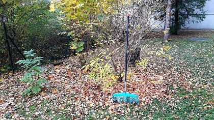 Kleine Grünstreifen oder -flächen eignen sich oft nicht für Laubhaufen, weil die Blätter leicht auf die Wege und Straßen geweht werden können. Daher wird das Laub im öffentlichen Raum oft nur in größeren Strauchgruppen liegen gelassen.