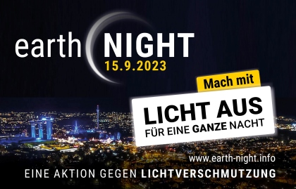 2023 wird die Earth Night am 15.9. stattfinden - lasst uns dieses Jahr in noch größerer Zahl gemeinsam ein (sternen)klares Zeichen setzen und die Notwendigkeit von Gebäudeanstrahlung und Werbebeleuchtung hinterfragen.