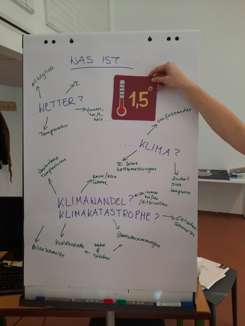 Die Teilnehmer*innen spielten eifrig bei einem Klima- Bingo-Spiel mit und suchten für ein Rätsel die geeigneten Wörter für jeden Buchstaben des Wortes „Klimaschutz“. Anhand von Beispielen wurde der Transportweg und die damit verbundenen CO2-Emissionen (z. B. per Schiff, Flugzeug und LKW) bestimmter Lebensmittel, wie Trauben, Erdbeeren, Bananen und Kiwi aufgezeigt und gemeinsam erörtert, warum saisonale, regionale und lokale Lebensmittel dem Klima, der Umwelt und der Gesundheit guttun.